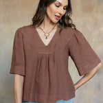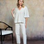 Softly feminine, the Amelie Linen Top is a springtime essential with romantic details. The wide v-neckline and puff half-sleeves meet wide hems, creating a silhouette that feels as fresh as the season itself. Wear it with our Lenore Linen Pants for an effortlessly coordinated look or with jeans for easy, everyday charm. Part of our mix-and-match Italian Linen assortment.