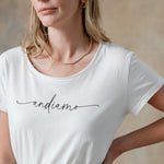 "Let's go" wherever the day takes you in our Andiamo Graphic Tee, cut from supersoft Italian cotton in a feminine shape with details like a raw-edge boat neck, cap sleeves, and shirttail hem. Part of our Speak Italian Graphic Tee collection.