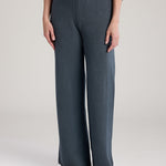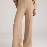 - Full-length wide-leg pant, ribbed elastic waistband.