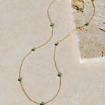- Chain necklace with bezel-set simulated pavé stones, lobster-claw closure.