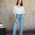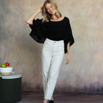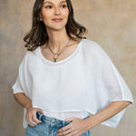 A light layer inspired by sun-drenched afternoons, the Lana Linen Topper is the perfect finishing touch. With its cropped silhouette and flowing dolman sleeves, this breezy piece is designed to complement camisoles and dresses alike. Layer it over the Marina Silk Dress for a delicate balance of texture or style it with the Lenore Linen Pants for a coordinated look. Part of our mix-and-match Italian Linen assortment.
