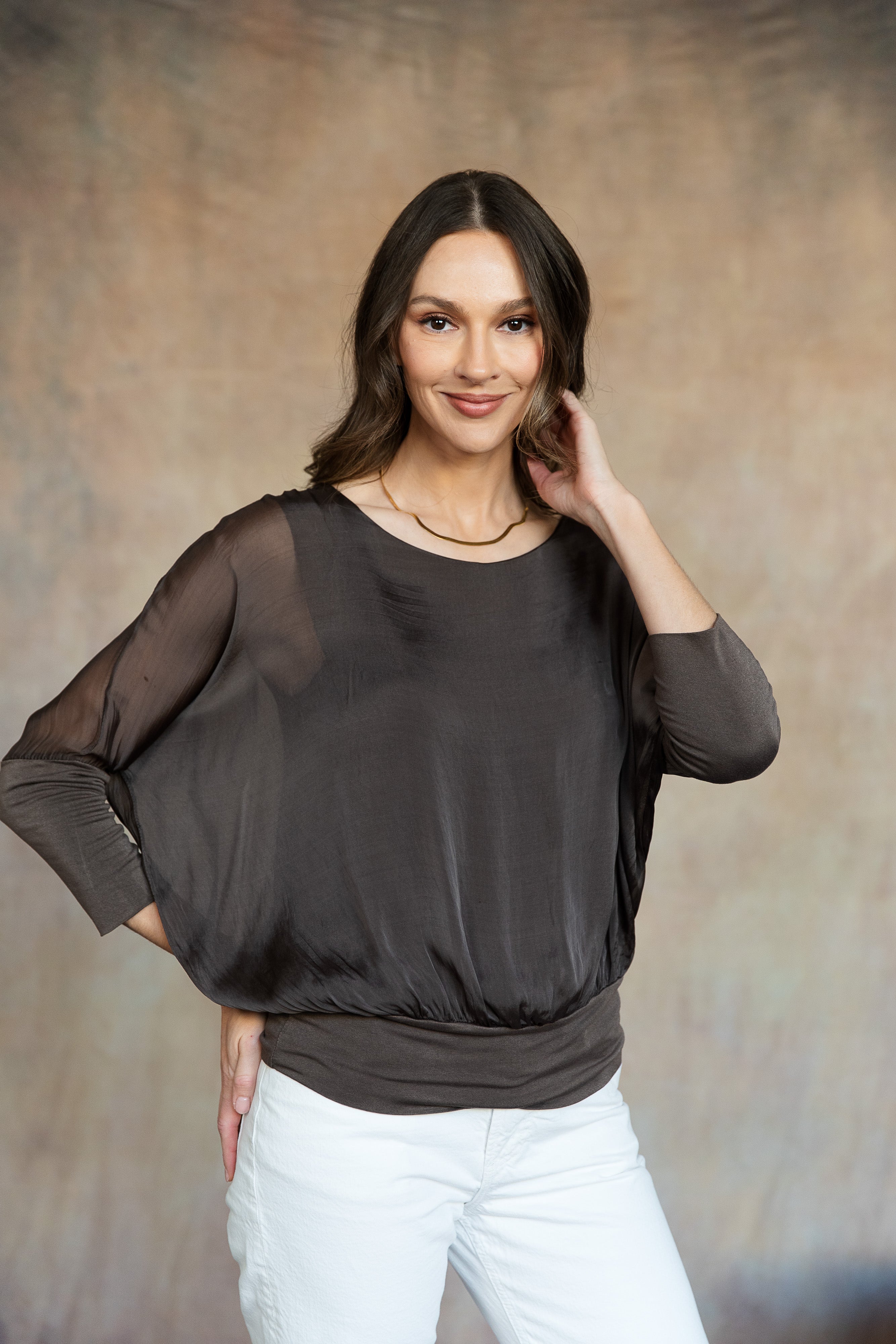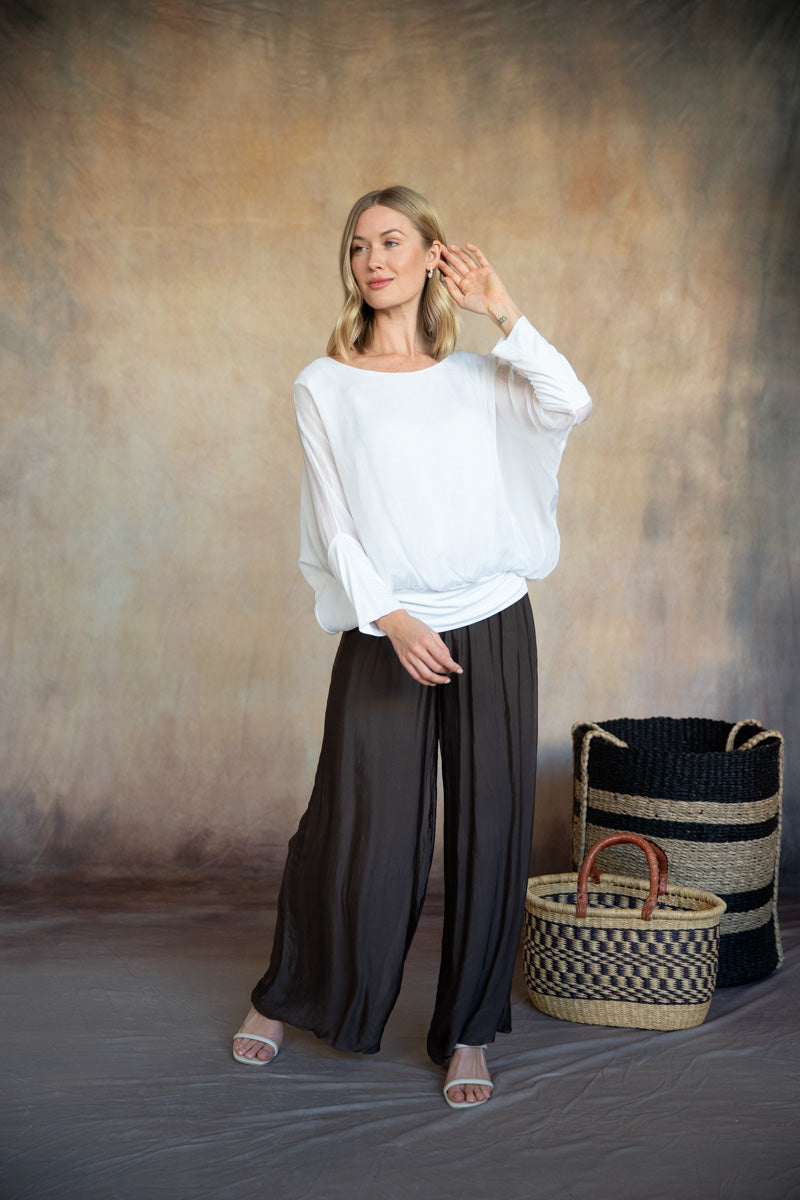 Our iconic Cassandra Silk Top is the pièce de résistance that started it all. This beloved best-seller boasts a luxurious loose silk georgette overlay and a super comfortable viscose shell. The banded hemline adds a touch of sophistication, while the universally flattering fit makes it a wardrobe essential with everyday charm. Whether you’re pairing it with your favorite jeans or our Madelyn Silk Pants for a head-to-toe elevated ensemble, Cassandra effortlessly captures the essence of our brand’s timeless elegance and versatility. Part of our mix-and-match Italian Silk assortment.