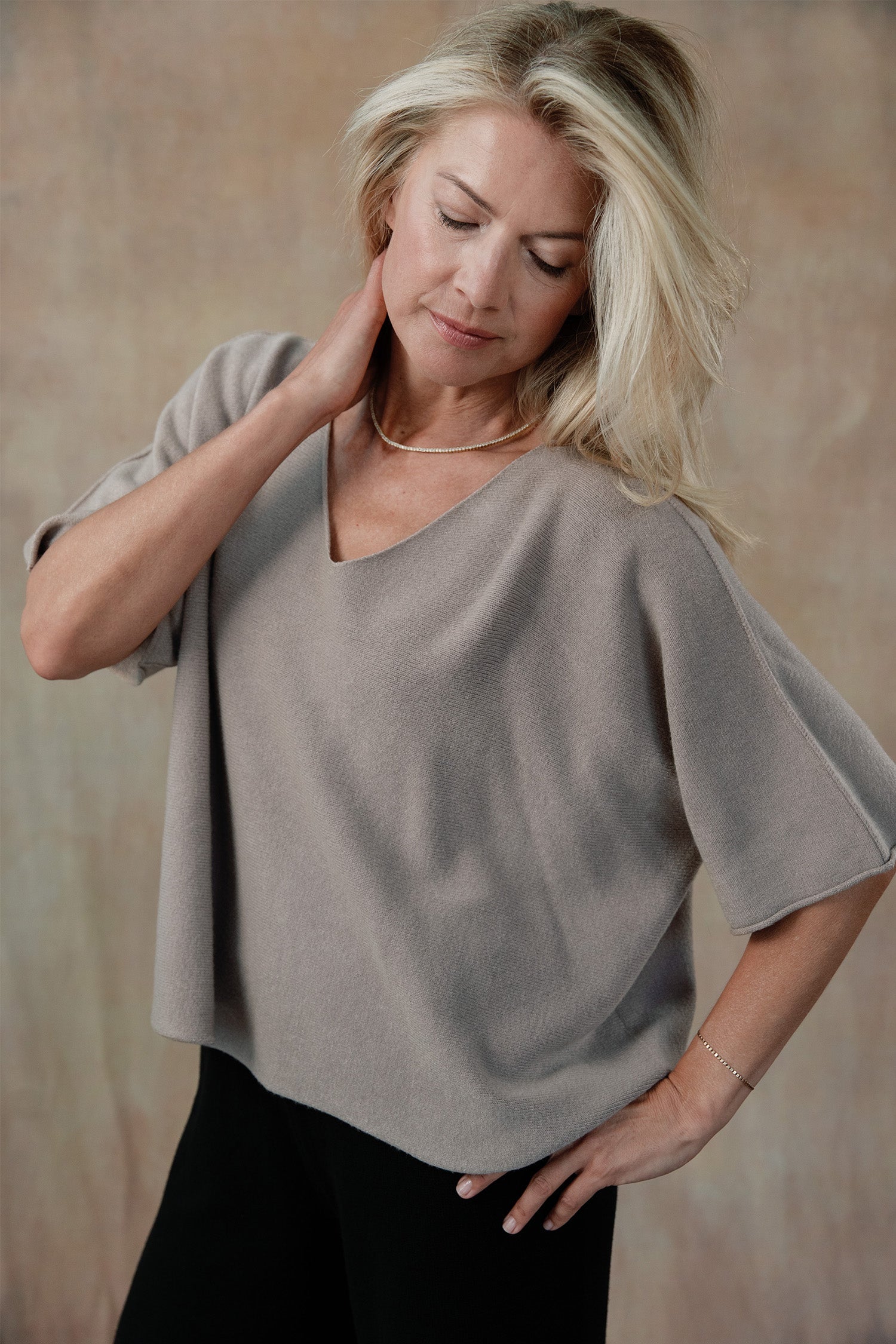 Our Coletta Short Sleeve Sweater is crafted from our signature buttery-soft knit fabric, a go-to piece for moments of relaxed sophistication. It features a v-neck, short sleeves, and flattering silhouette you'll fall for again and again. Perfectly paired with our Cleo Sweater Pants, Coletta creates a seamless blend of style and coziness. Part of our Mix-and-Match Knitwear capsule.