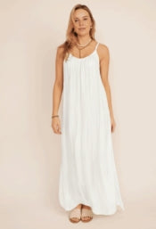A flowing silhouette inspired by seaside escapes, the Marina Silk Dress captures the grace of warmer weather occasions. This style is made from Italian silk with adjustable spaghetti straps, a gathered neckline, side slits, and a soft viscose lining. Style it with the Mona Silk Topper for a luxuriously layered look or the Lana Linen Topper for a touch of relaxed charm.