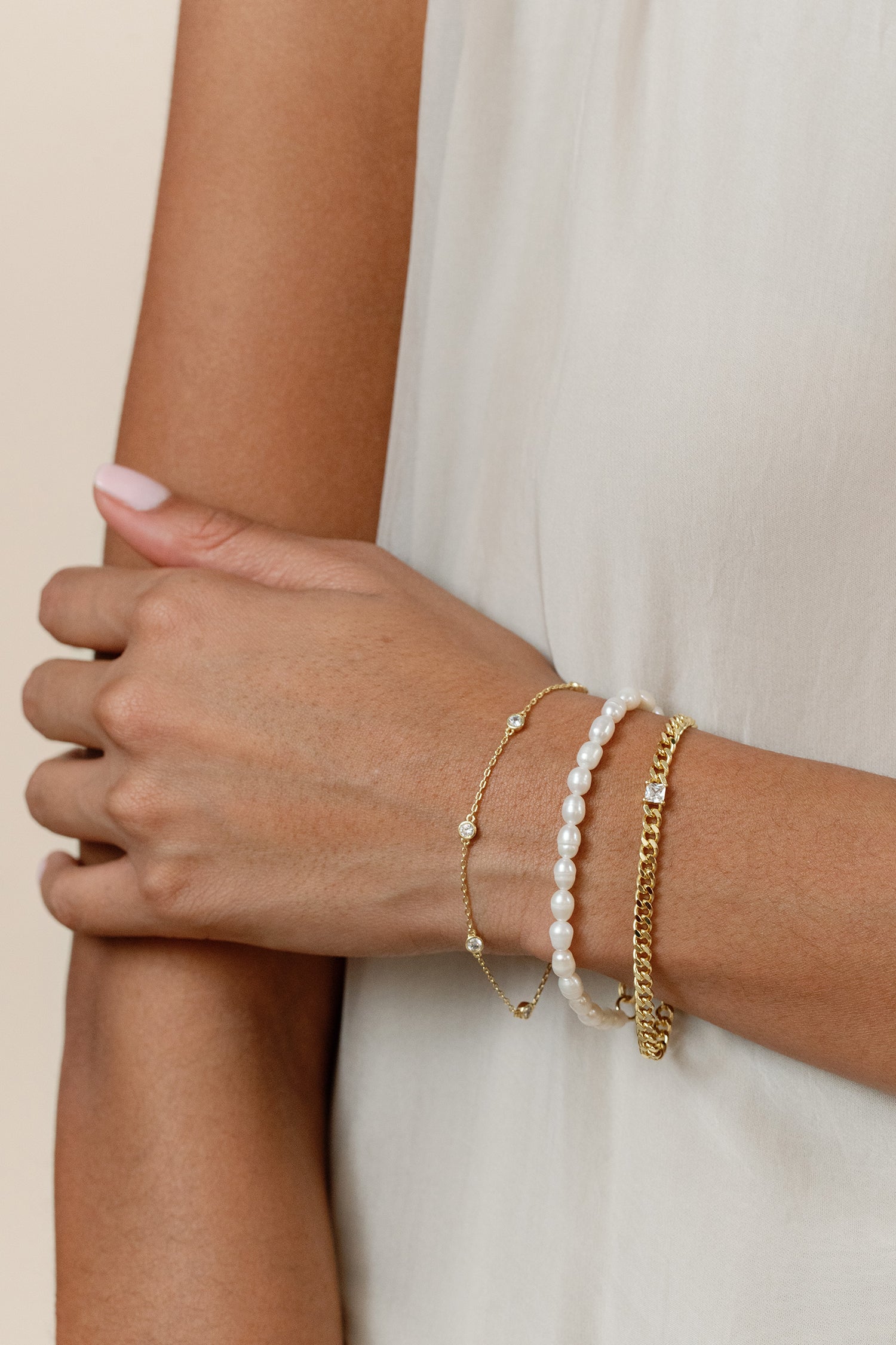 A string of freshwater pearls adorns the Pippa Pearl Bracelet, a gorgeous piece to stack with our other pearl or pavé bracelet styles. Part of our Stackable Jewelry assortment.