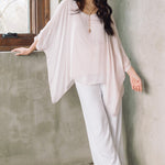 Our Martina Silk Top is an ode to grace. This stunning piece features delicate silk layers that cascade beautifully, complemented by an eye-catching asymmetrical hemline. Perfectly paired with jeans or pants, it offers a breezy, feminine look that's both effortless and elegant. For a truly brilliant head-to-toe ensemble, match it with our Madelyn Silk Pants and step into a world of timeless allure. Part of our mix-and-match Italian Silk assortment.
