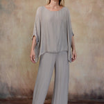 Our Martina Silk Top is an ode to grace. This stunning piece features delicate silk layers that cascade beautifully, complemented by an eye-catching asymmetrical hemline. Perfectly paired with jeans or pants, it offers a breezy, feminine look that's both effortless and elegant. For a truly brilliant head-to-toe ensemble, match it with our Madelyn Silk Pants and step into a world of timeless allure. Part of our mix-and-match Italian Silk assortment.