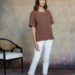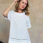 Simple yet striking, the Blanca Linen Top is a fresh take on everyday linen. The crew neckline, half-sleeves, and open-stitch detailing along the hems add subtle texture and artisanal charm. Pair it with the Lenore Linen Pants for a cohesive spring look or wear it with jeans for relaxed, day-to-day ease. Part of our mix-and-match Italian Linen assortment.