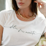 Embrace the "sweetness of doing nothing" in our Dolce Far Niente Graphic Tee, cut from supersoft Italian cotton in a feminine shape with details like a raw-edge boat neck, cap sleeves, and shirttail hem. Part of our Speak Italian Graphic Tee collection.