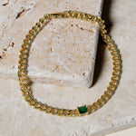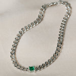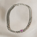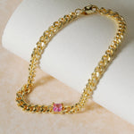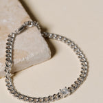 - Cuban chain bracelet, one claw-set princess cut simulated stone, lobster-claw closure.