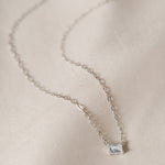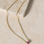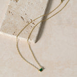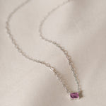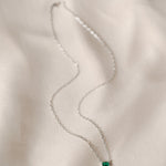 - Chain necklace with one claw-set emerald cut simulated stone.