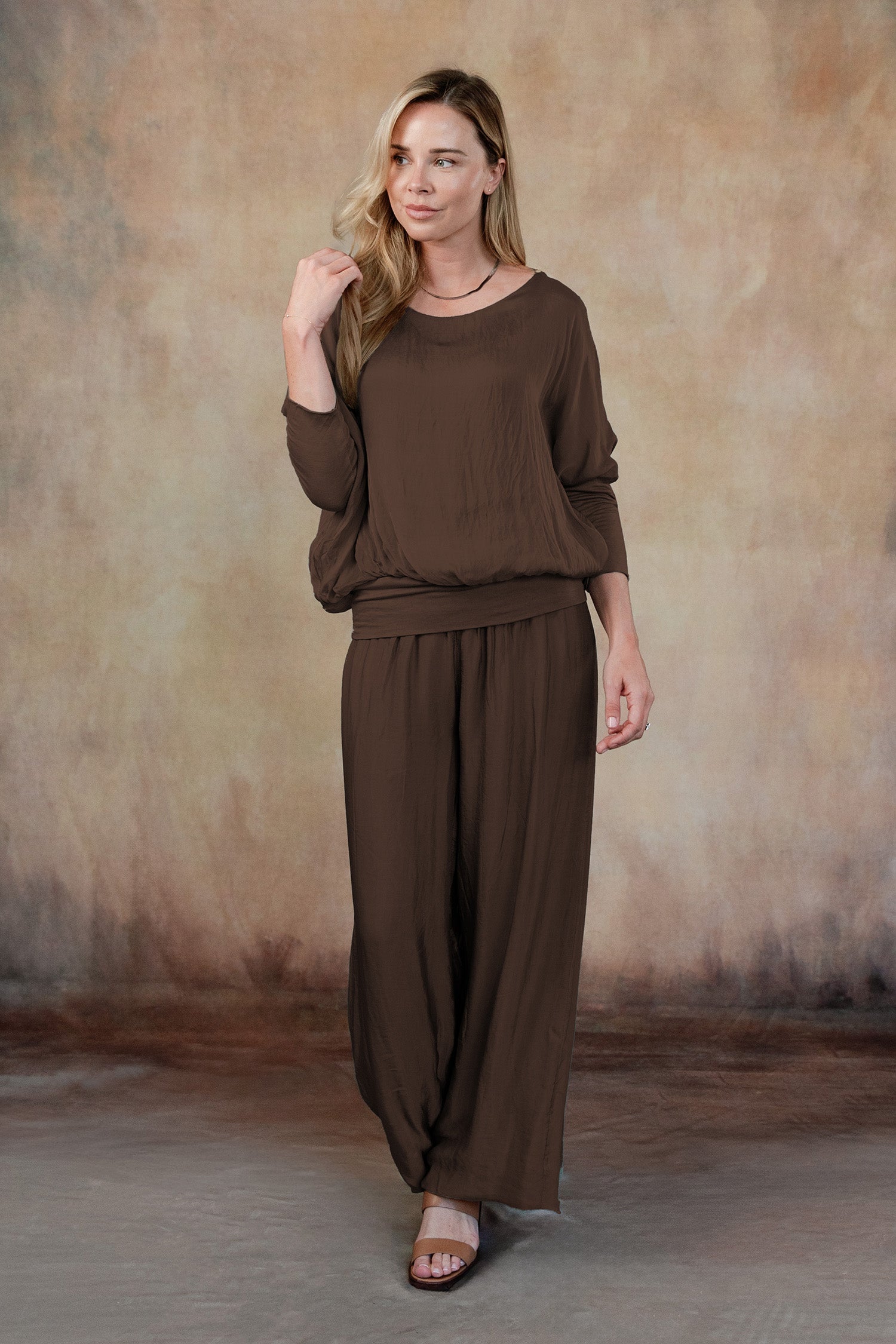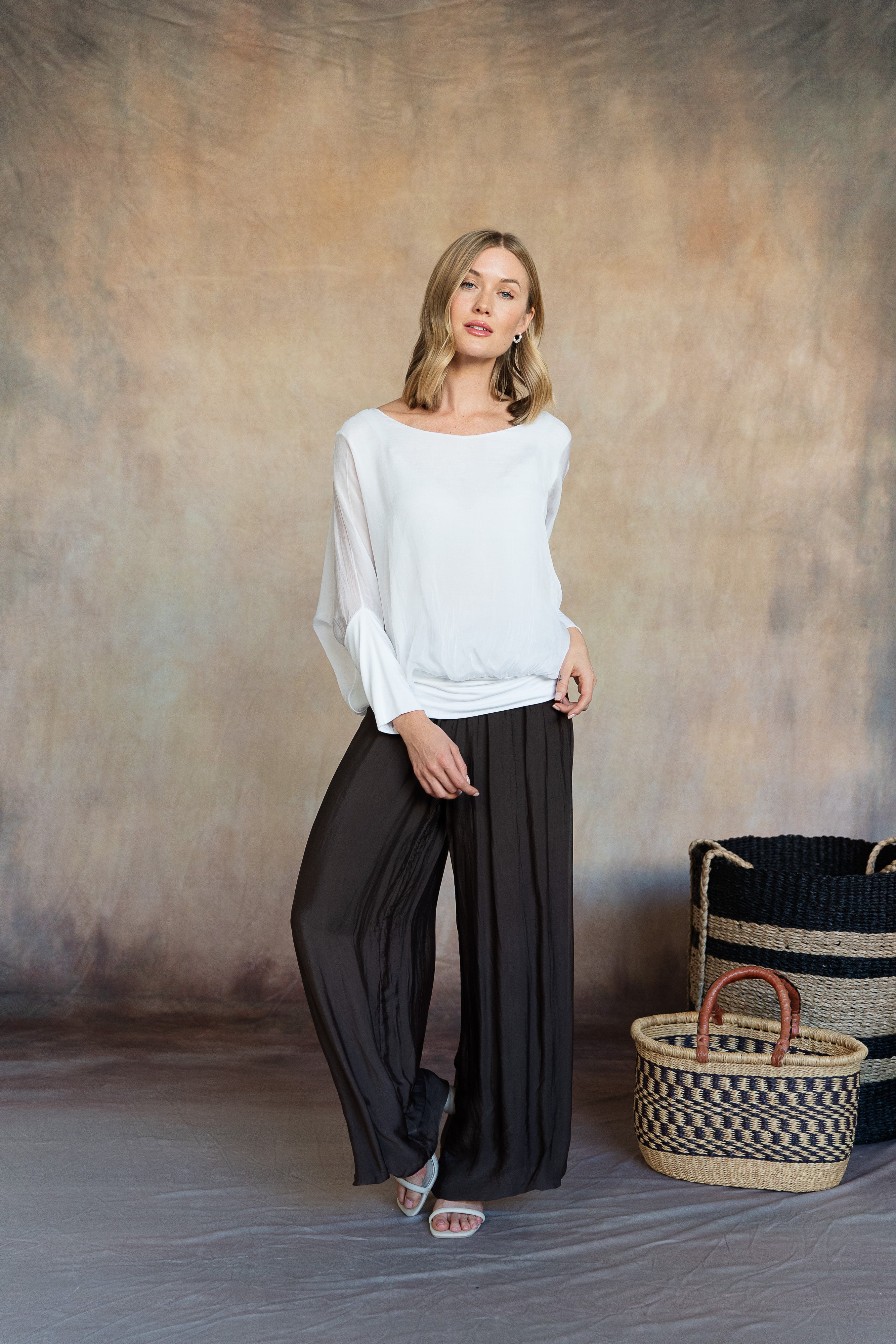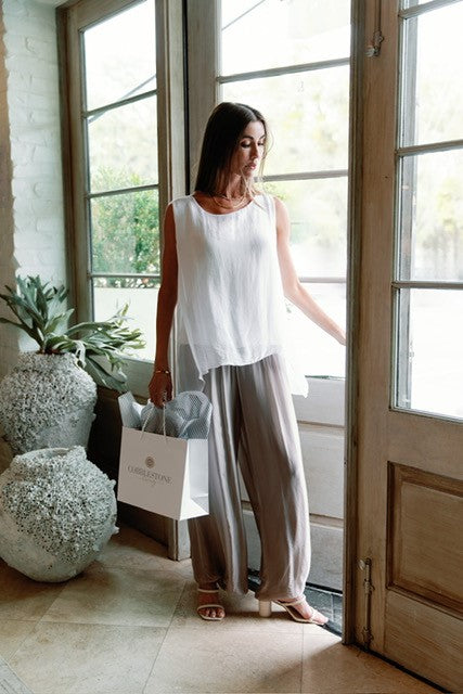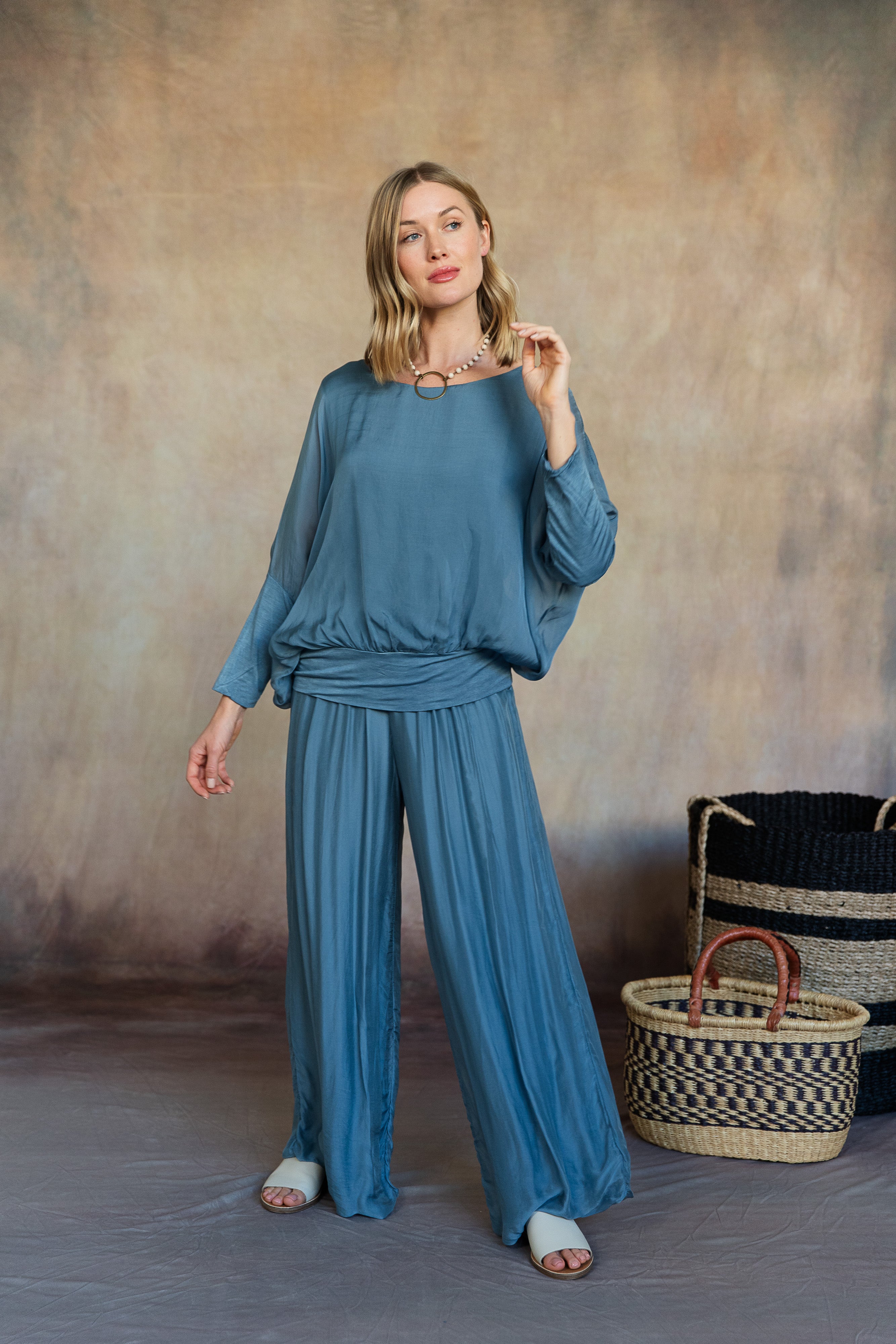 You'll swoon over our Madelyn Pants, where luxurious Italian silk meets impeccable design. These pants feature a comfortable waistband and a flattering wide-leg cut, offering a perfect blend of elegance and ease. Available in stunning colorways that seamlessly coordinate with our effortless tops and cozy knitwear, the Madelyn Pants make full-body dressing an art form. Part of our mix-and-match Italian Silk assortment.