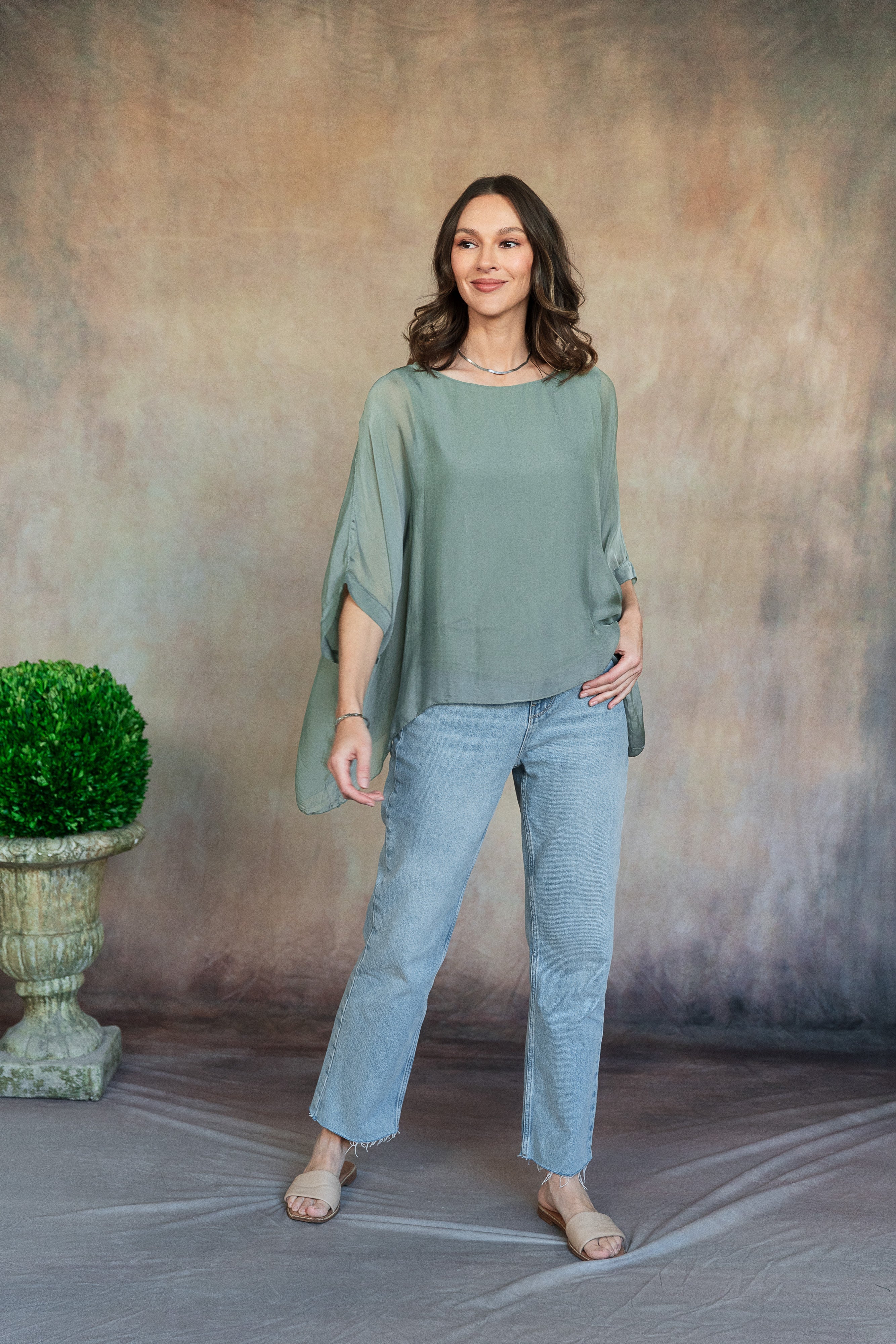 Martina Silk Top (Sage)