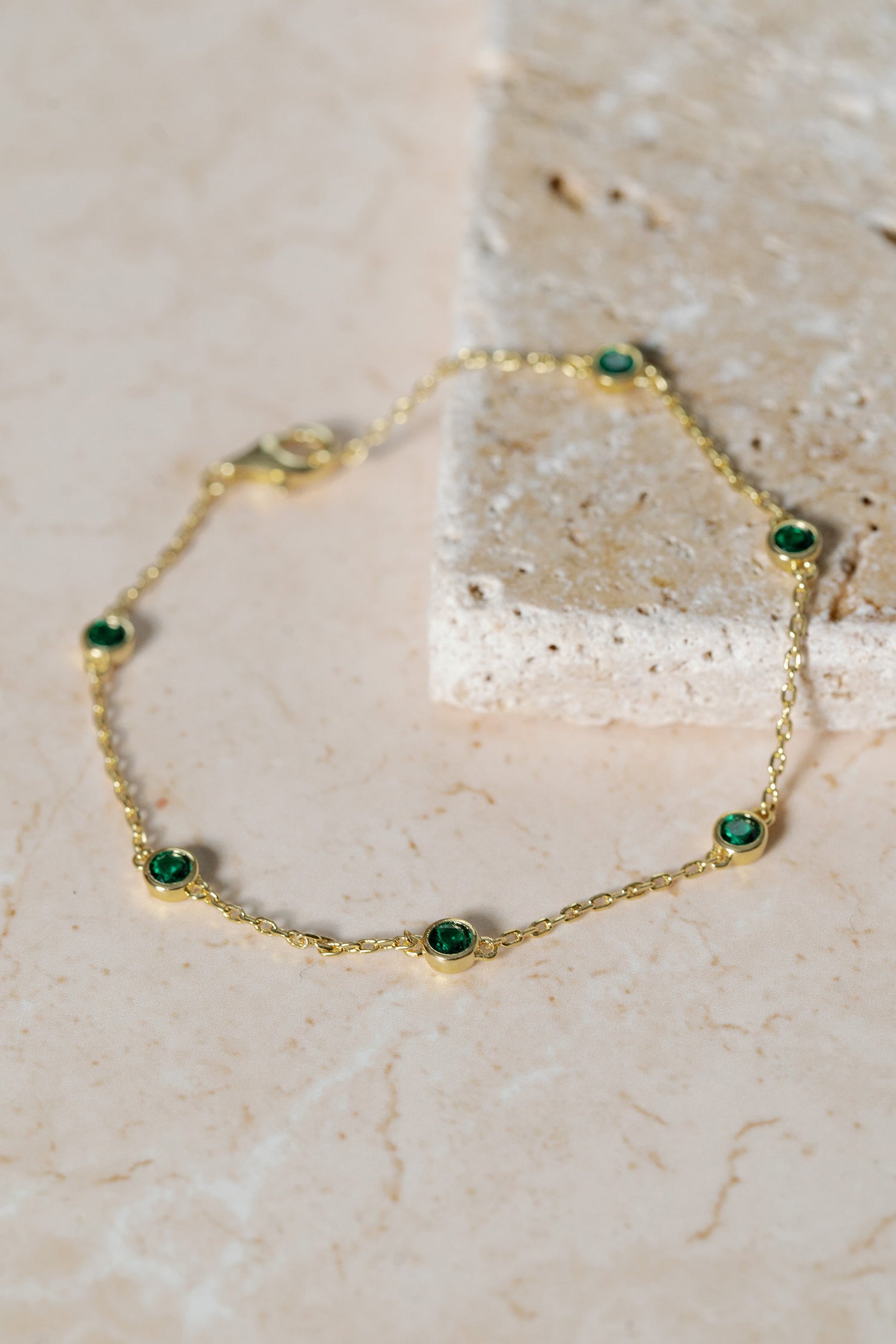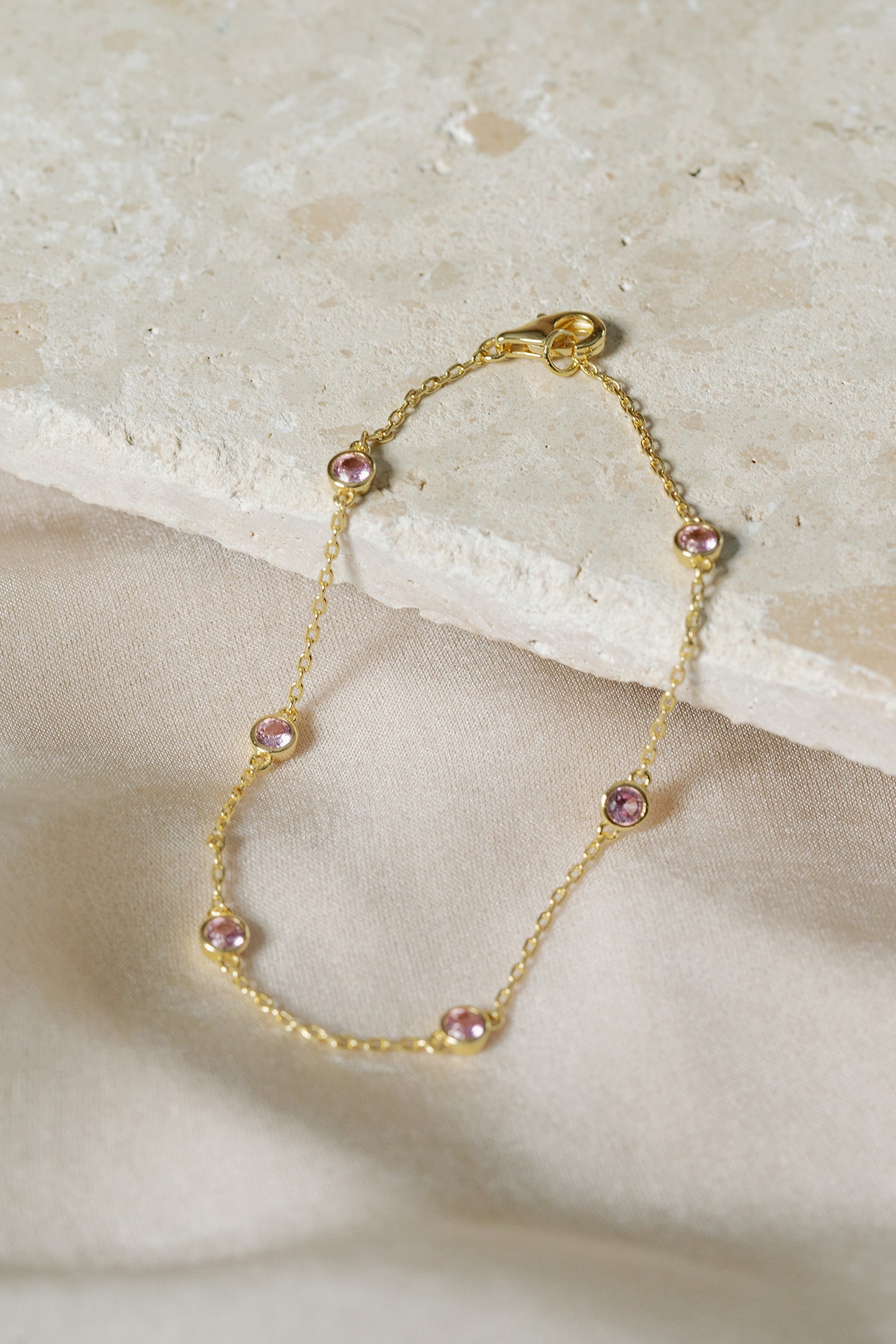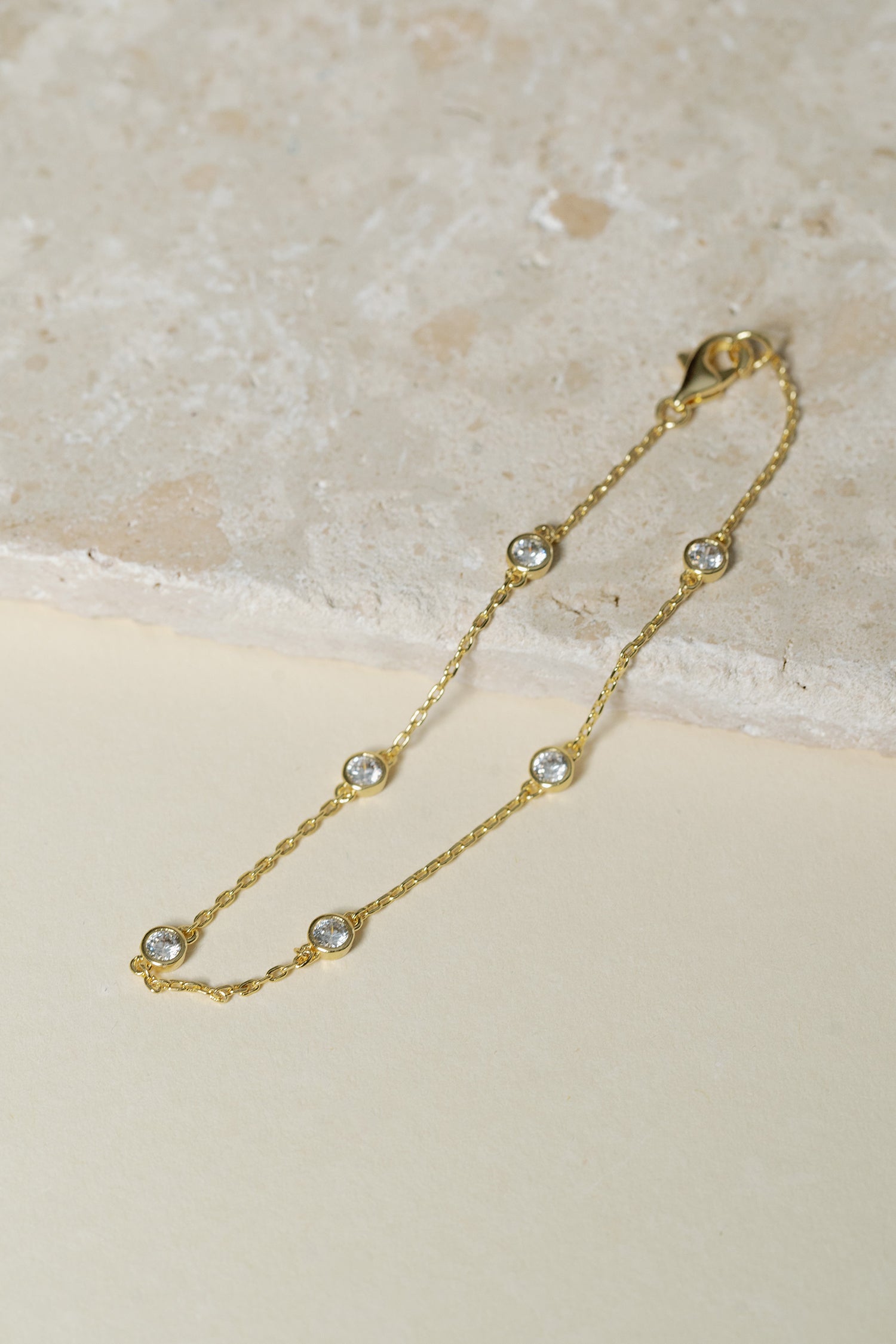 - Chain bracelet with bezel-set simulated pavé stones, lobster-claw closure.