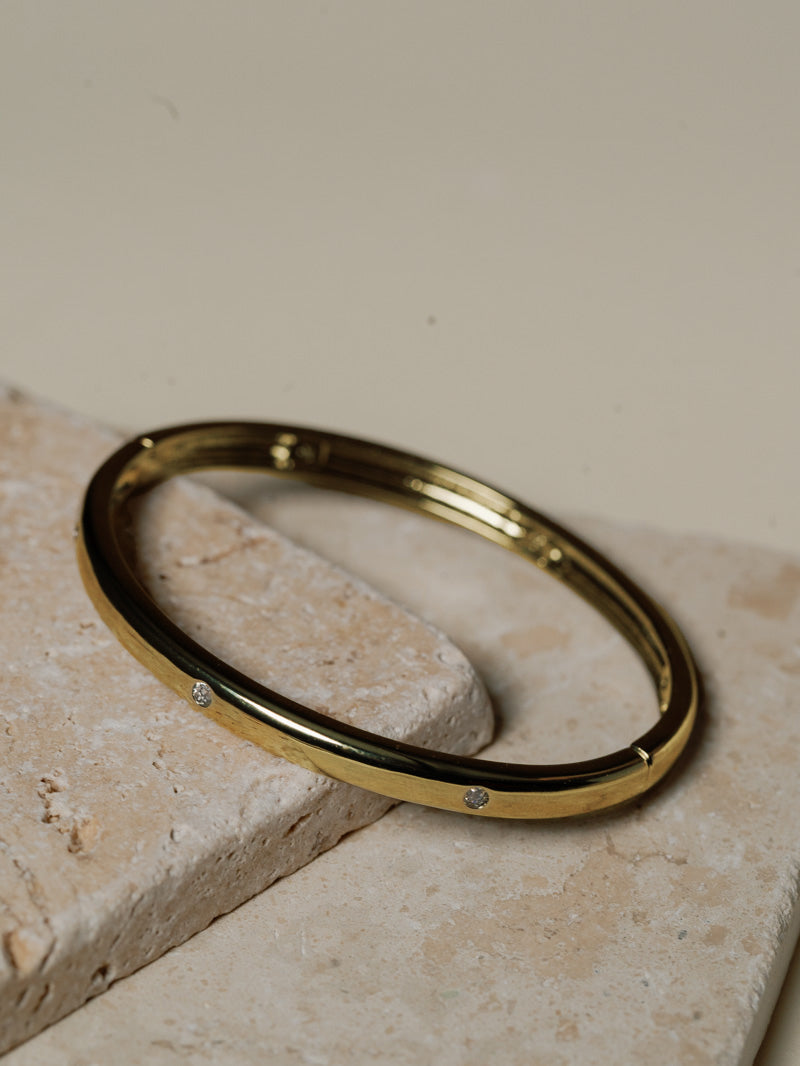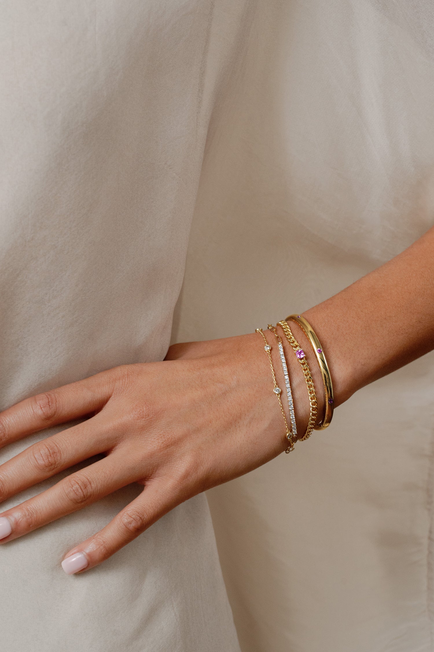 Evenly spaced pavé stones dot the Emily Pavé Bangle Bracelet, a lovely piece to pair with other metal or pavé bracelet styles. Part of our Stackable Jewelry assortment.