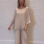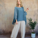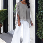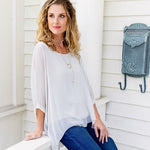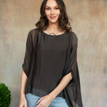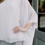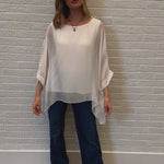 Our Martina Silk Top is an ode to grace. This stunning piece features delicate silk layers that cascade beautifully, complemented by an eye-catching asymmetrical hemline. Perfectly paired with jeans or pants, it offers a breezy, feminine look that's both effortless and elegant. For a truly brilliant head-to-toe ensemble, match it with our Madelyn Silk Pants and step into a world of timeless allure. Part of our mix-and-match Italian Silk assortment.