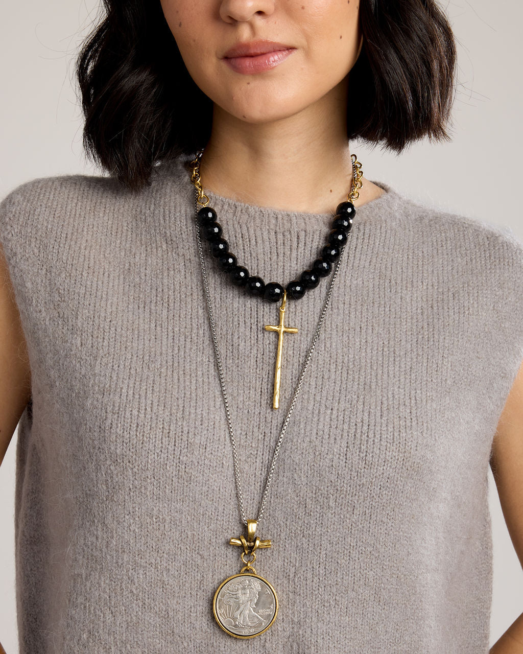 Meaningful and refined, the Sloan Necklace features a slender cross pendant framed by a string of stones for a softly radiant finish. The combination of spiritual symbolism and subtle shimmer makes it a beautiful everyday piece—whether worn alone or layered with your favorite chains